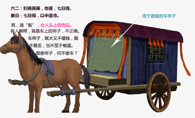 〖六二〗妇丧①其茀②,勿逐③,七日得④。