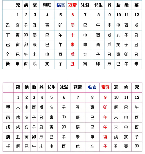 阳类自墓至旺,体现的是人类存在的时空;阴类自死至旺,反映的是阴性存在的时空。如上表。